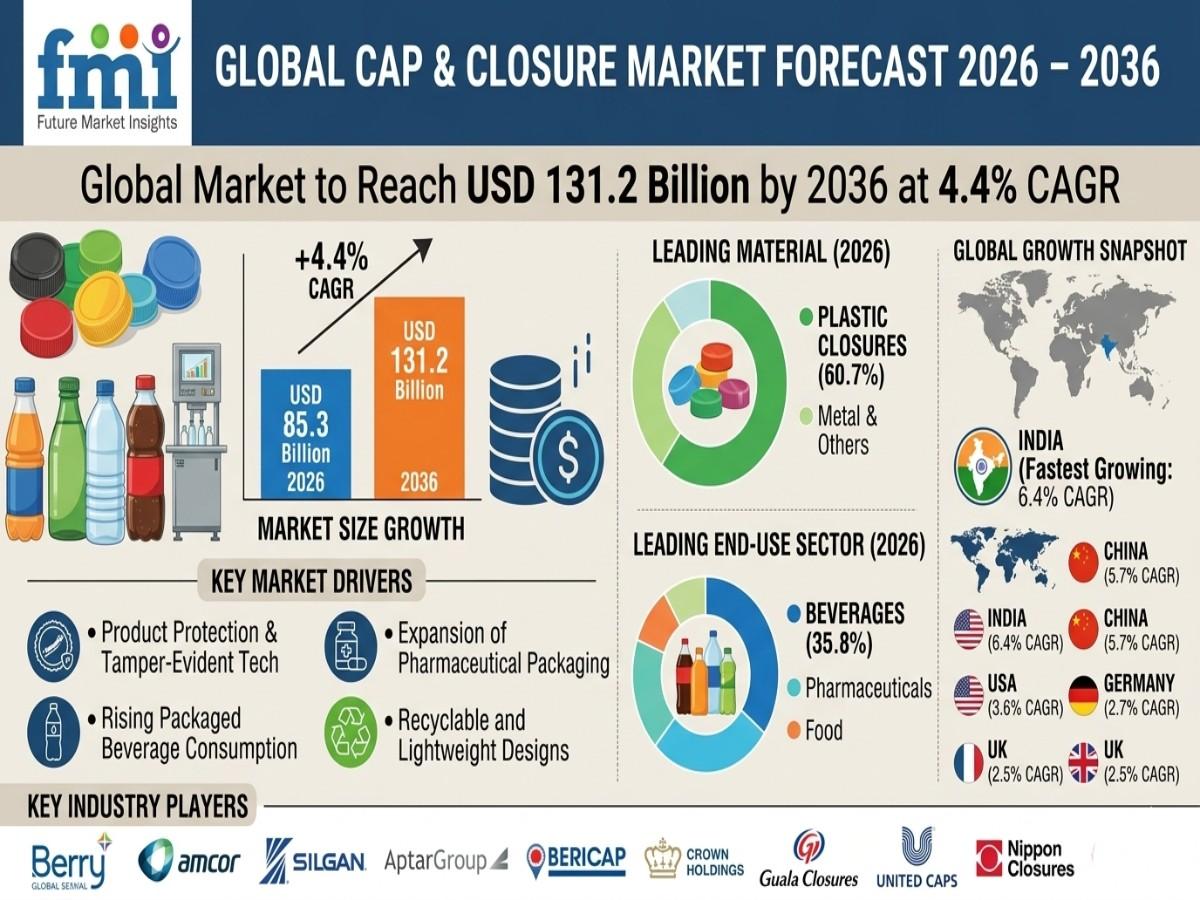Cap and closures are essential packaging components used to seal bottles and containers in food, beverage, pharmaceutical, and household products. The market is growing steadily as demand for secure, tamper-evident, and resealable packaging increases, supported by technological improvements in closure design and sustainability initiatives in global packaging industries.