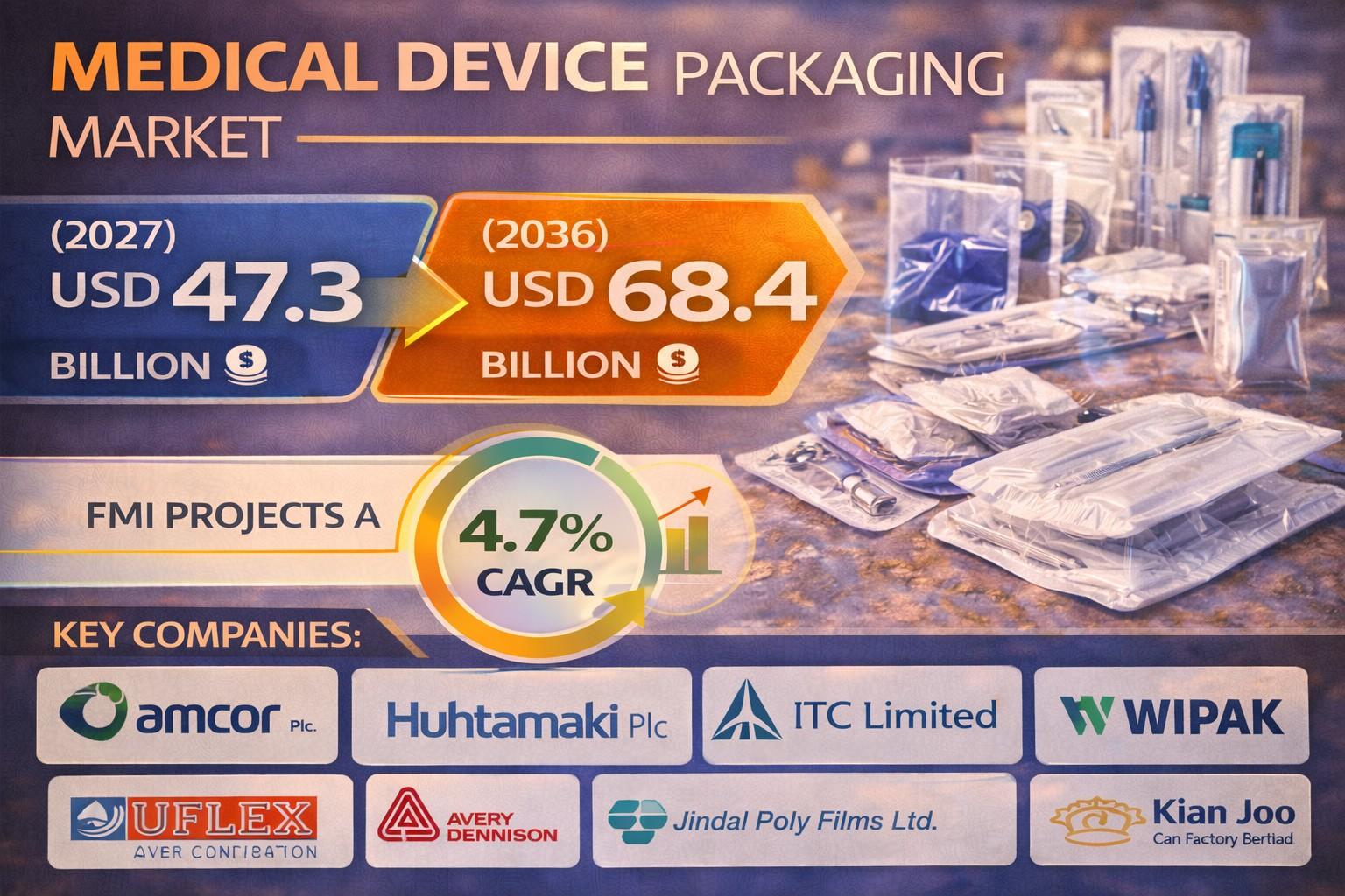 The global medical device packaging market was valued at USD 45.2 billion in 2026 and is projected to reach USD 68.4 billion by 2036, expanding at a 4.7% CAGR. Growth is steady and regulation-driven, supported by increasing surgical volumes, aging populations, rising implantable device usage, and expanding diagnostic procedures. Demand is strongly influenced by sterility assurance mandates, higher microbial barrier requirements, and strict compliance frameworks such as U.S. Food and Drug Administration Quality System Regulation and ISO 11607 for terminally sterilized devices. The expansion of minimally invasive procedures and wearable medical technologies is further accelerating demand for compact, tamper-evident, and high-barrier packaging. However, pricing pressures from healthcare procurement systems and volatility in high-performance materials such as Tyvek and specialty polymers are moderating margin growth.