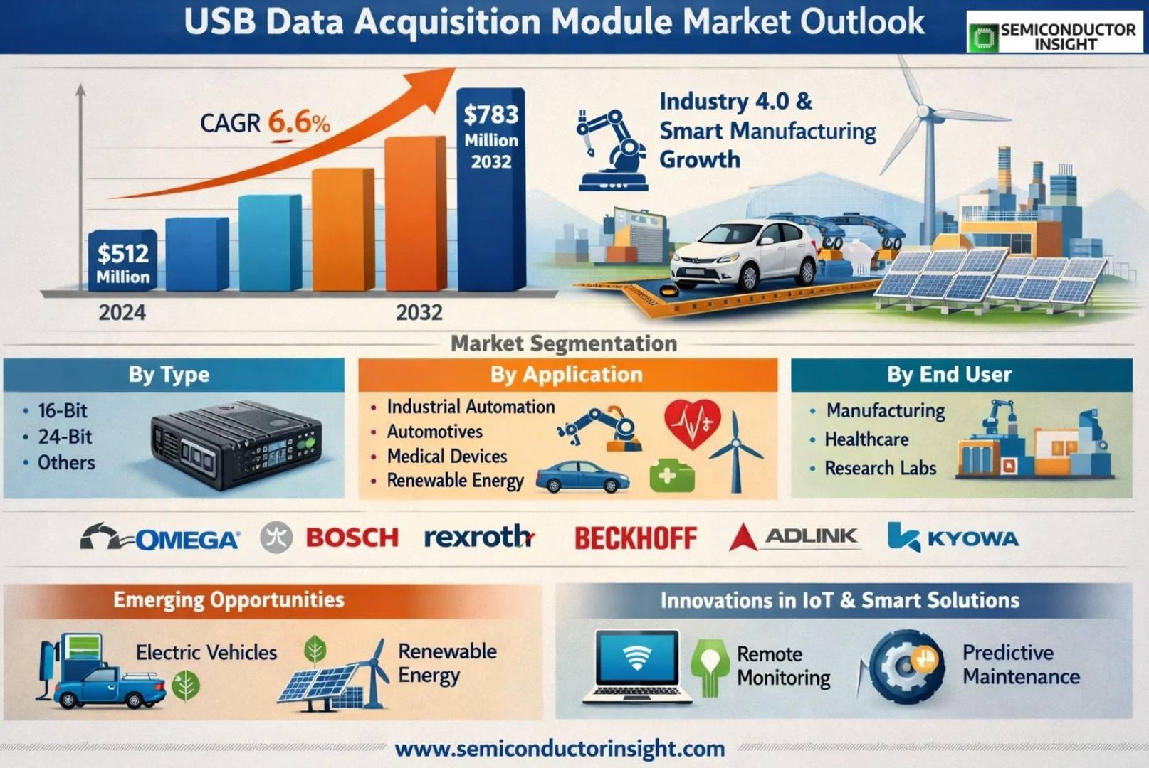 Global USB Data Acquisition Module Market, valued at US$ 512 million in 2024, is poised for substantial growth, projected to reach US$ 783 million by 2032. This expansion, driven by a compound annual growth rate (CAGR) of 6.6%, is detailed in a comprehensive new report published by Semiconductor Insight. The study underscores the critical role these versatile measurement devices play across multiple industries by enabling precise data collection and real-time monitoring through universal USB connectivity.