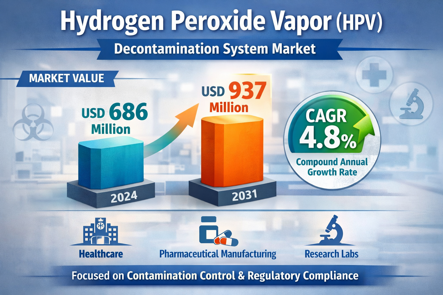 Hydrogen Peroxide Vapor (HPV) Decontamination System Market was valued at USD 686 million in 2024 and is projected to reach USD 937 million by 2031, growing at a compound annual growth rate (CAGR) of 4.8% during the forecast period. This steady growth reflects the increasing emphasis on contamination control across healthcare, pharmaceutical manufacturing, and research environments, where stringent regulatory compliance and patient safety standards are non-negotiable.