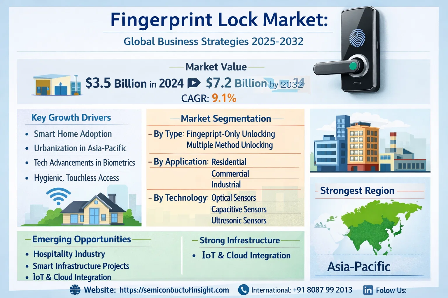 Global Fingerprint Lock Market, valued at a robust USD 3.5 billion in 2024, is on a trajectory of impressive expansion, projected to reach USD 7.2 billion by 2032. This growth, representing a compound annual growth rate (CAGR) of 9.1%, is detailed in a comprehensive new report published by Semiconductor Insight. The study highlights the pivotal role of these advanced biometric security devices in enhancing security, convenience, and access control across residential, commercial, and industrial sectors, capitalizing on the global shift towards keyless entry and smart building automation.