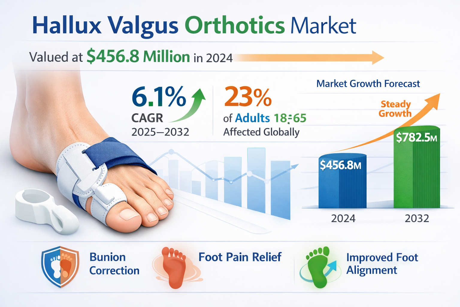 According to a newly published market research report by 24LifeSciences, global hallux valgus orthotics market was valued at USD 456.8 million in 2024 and is projected to reach USD 782.5 million by 2032, growing at a compound annual growth rate (CAGR) of 6.1% during the forecast period 20252032.
