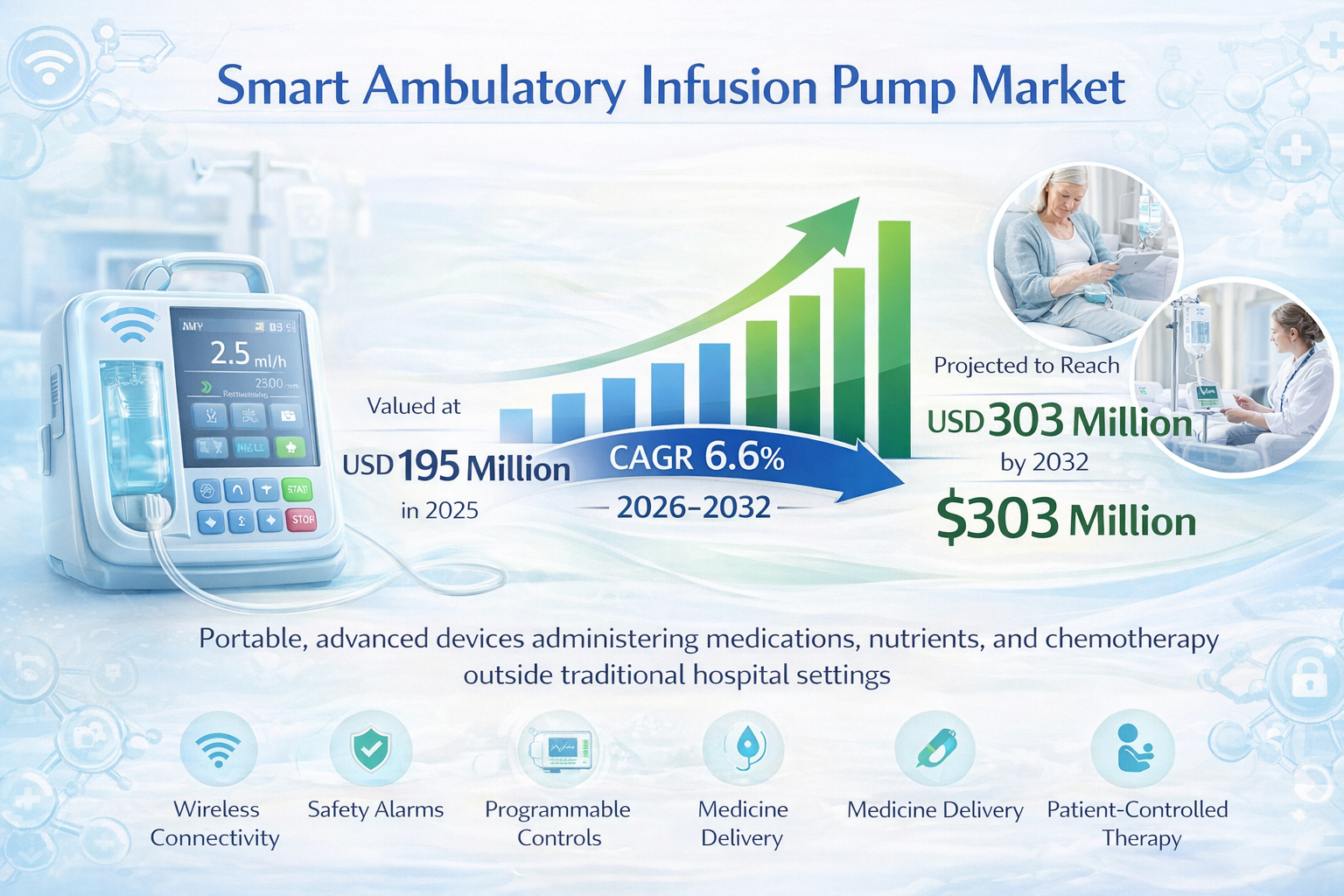 According to a newly published market research report by 24LifeSciences, the global smart ambulatory infusion pump market was valued at USD 195 million in 2025 and is projected to reach USD 303 million by 2032, growing at a compound annual growth rate (CAGR) of 6.6% during the forecast period 20262032.