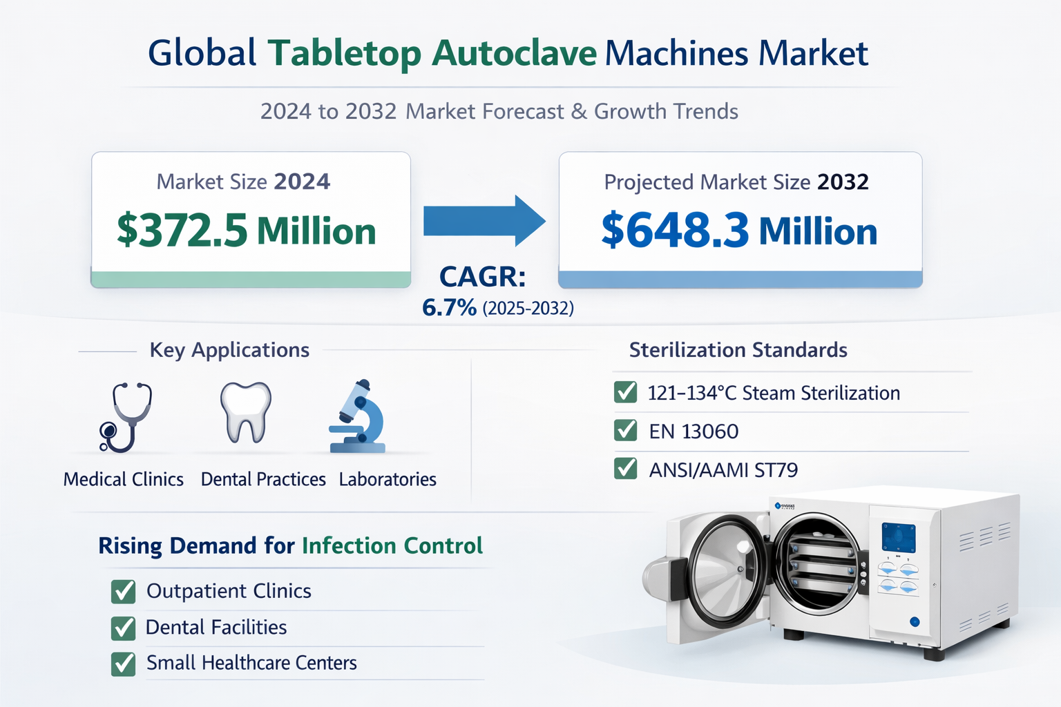 According to a newly published market research report by 24LifeSciences, global tabletop autoclave machines market was valued at USD 372.5 million in 2024 and is projected to reach USD 648.3 million by 2032, growing at a compound annual growth rate (CAGR) of 6.7% during the forecast period 20252032.