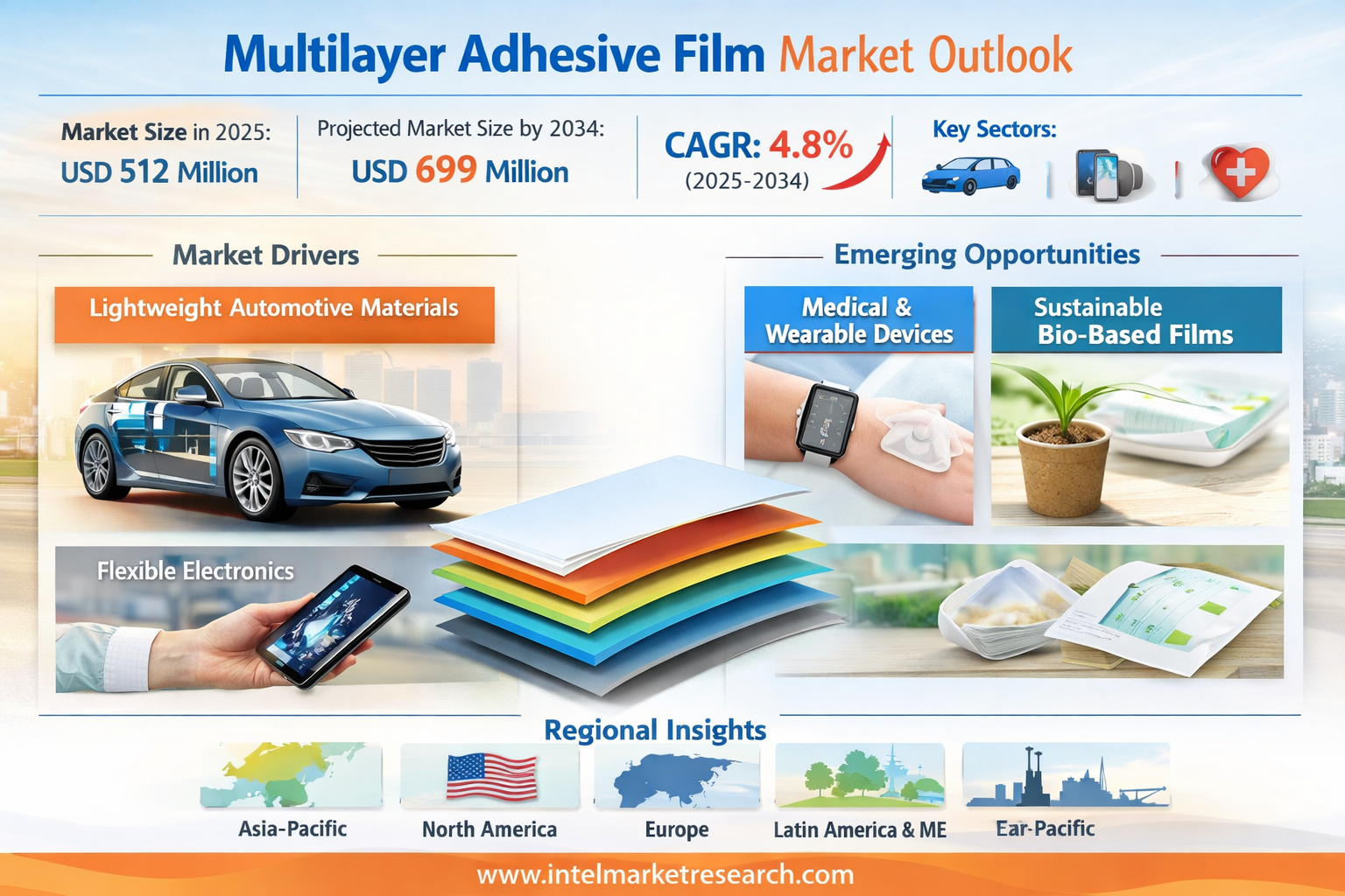 According to a new report from Intel Market Research, the global multilayer adhesive film market was valued at USD 512 million in 2025 and is projected to reach USD 699 million by 2034, growing at a steady CAGR of 4.8% during the forecast period. This growth trajectory reflects increasing adoption across automotive, electronics, and medical sectors where advanced bonding solutions are becoming essential for modern manufacturing processes.