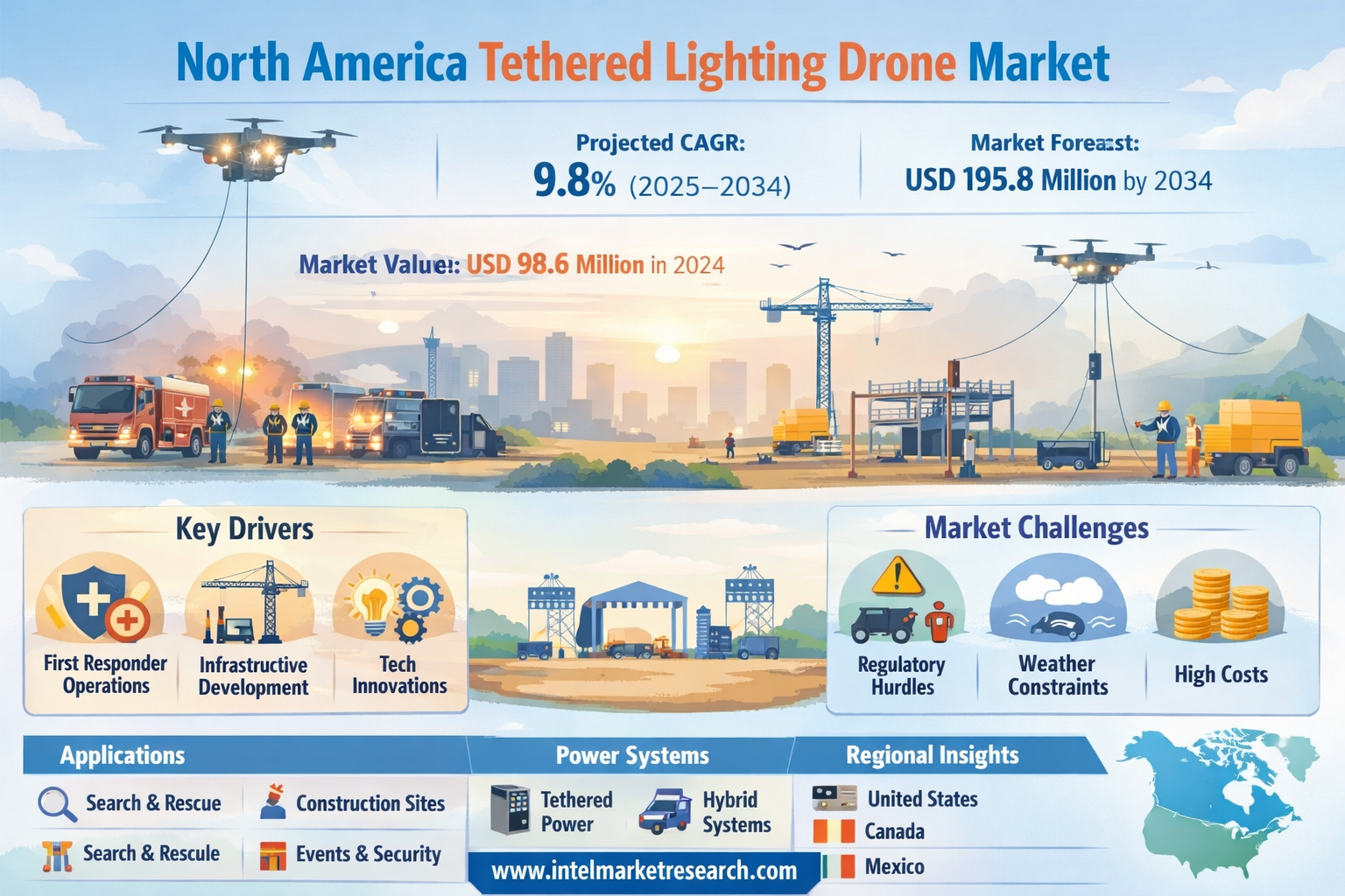 Collectively, these factors are expected to broaden the addressable market, stimulate continued product innovation, and accelerate the penetration of tethered lighting drone technology across new applications and geographies throughout North America.