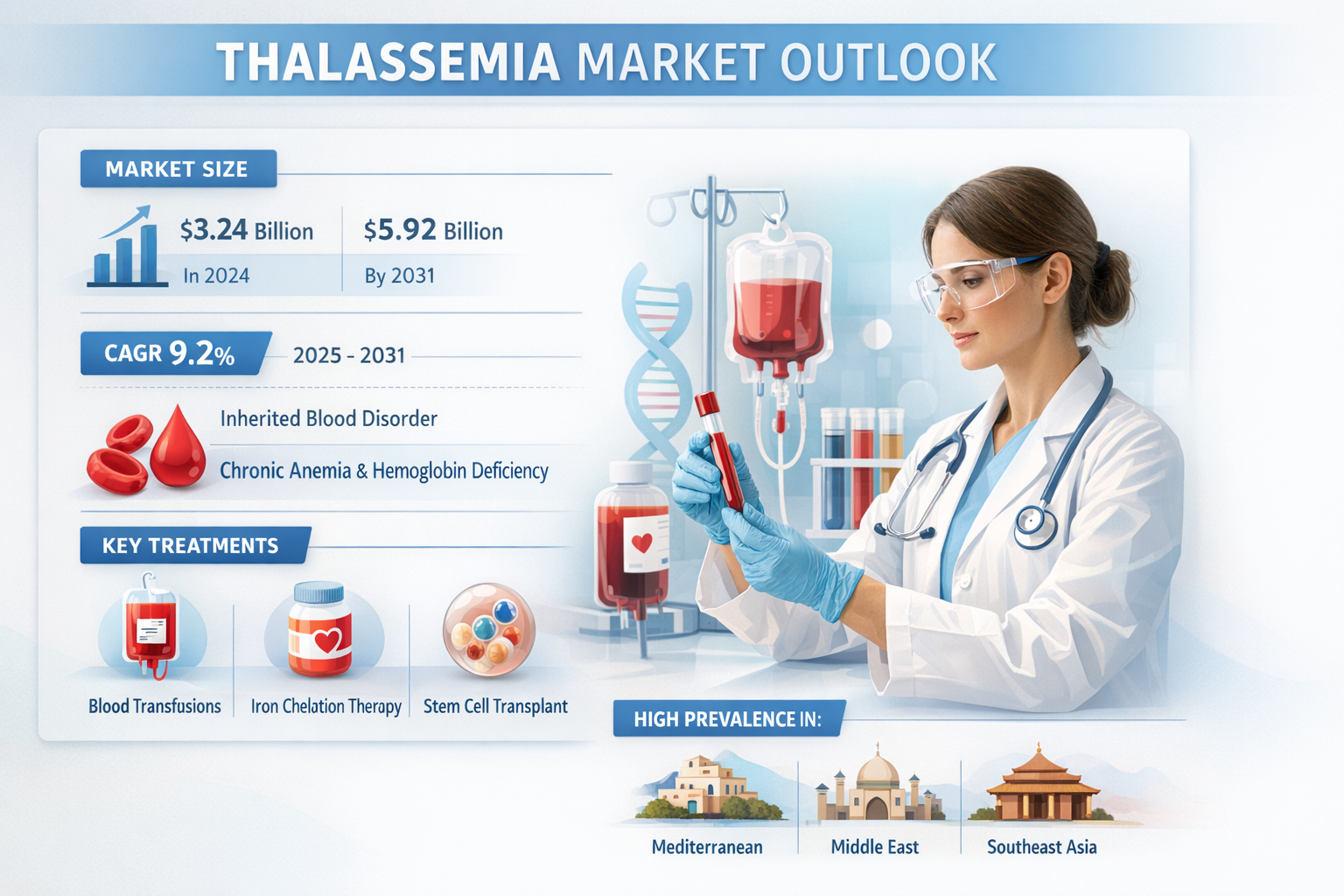 According to a newly published market research report by 24LifeSciences, global thalassemia market was valued at USD 3.24 billion in 2024 and is projected to reach USD 5.92 billion by 2031, growing at a compound annual growth rate (CAGR) of 9.2% during the forecast period 20252031.