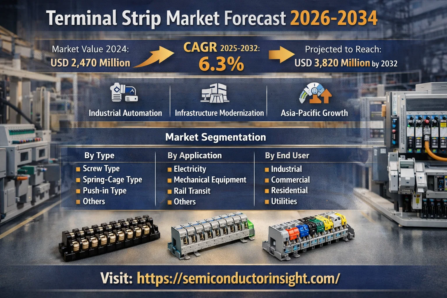 Global Terminal Strip Market, valued at USD 2,470 million in 2024, is poised for substantial growth, projected to reach USD 3,820 million by 2032. This expansion, representing a compound annual growth rate (CAGR) of 6.3% during the forecast period 2026-2035, is detailed in a comprehensive new report published by Semiconductor Insight. The study underscores the indispensable role of these fundamental electrical connection components in ensuring safety, reliability, and efficiency across a vast spectrum of industrial and commercial applications.
