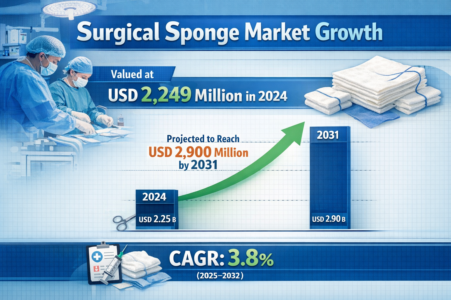 Surgical sponge market continues to demonstrate stable and essential growth within the healthcare and life sciences sector, supported by rising surgical volumes, stringent patient safety standards, and consistent demand for sterile consumables. Valued at USD 2,249 million in 2024, the market is projected to reach USD 2,900 million by 2031, expanding at a compound annual growth rate (CAGR) of 3.8% during the forecast period from 2025 to 2032.