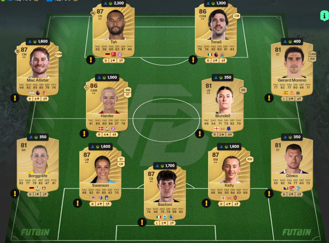 La note globale de l'équipe doit atteindre un minimum de 86.