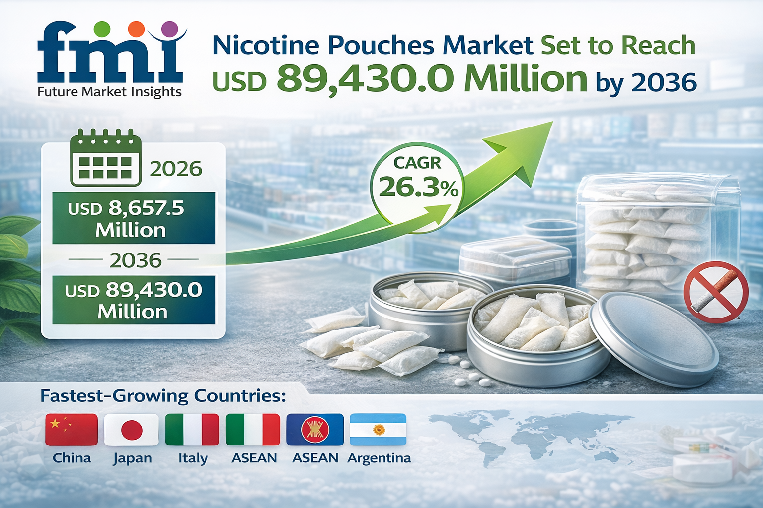 The nicotine pouches market consists of smokeless oral nicotine products designed to deliver controlled nicotine without combustion, smoke, or vapor. These pouches are placed between the gum and lip and are widely used as discreet alternatives to cigarettes and vaping products, offering varied nicotine strengths, flavors, and pouch designs for adult consumers worldwide.