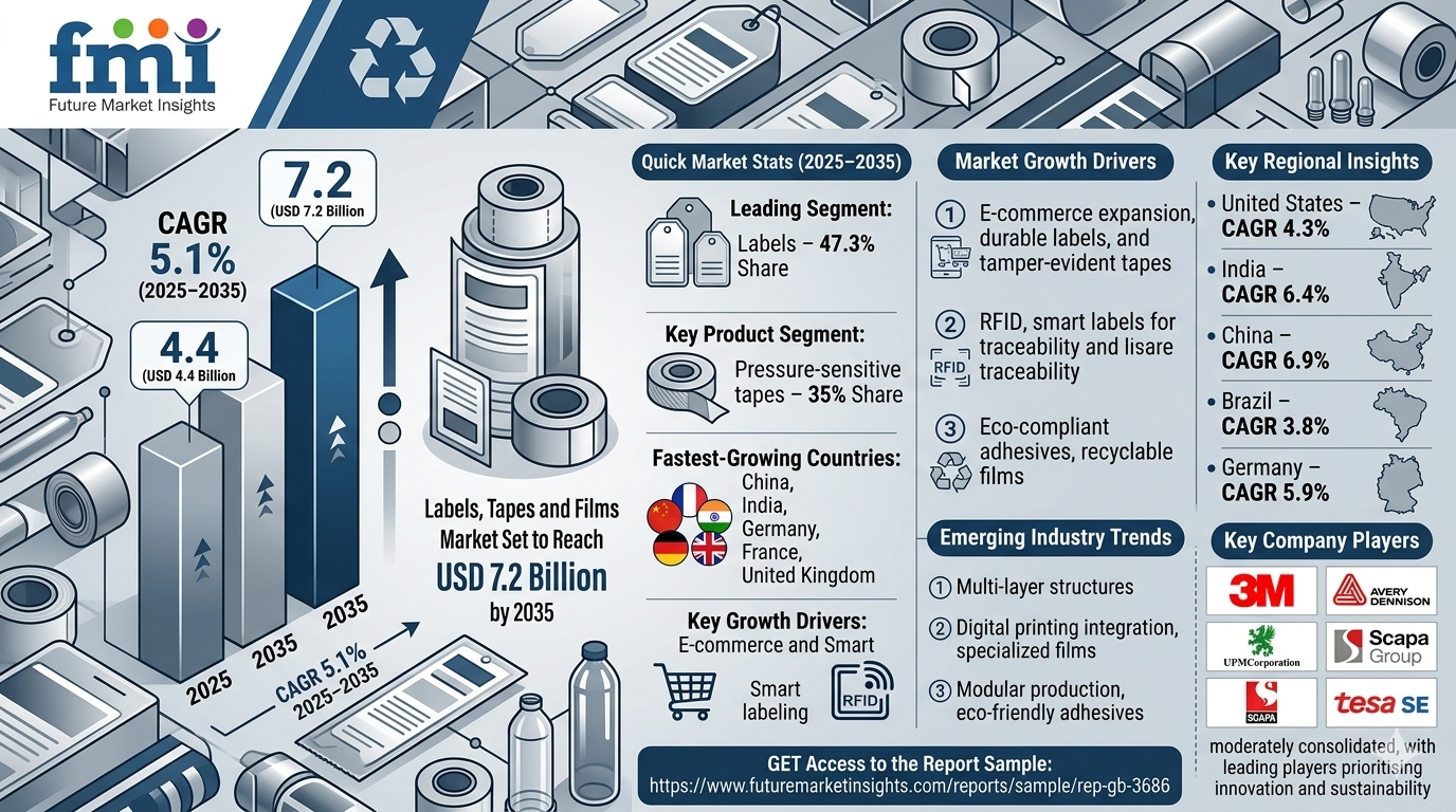 - Labels, Tapes and Films Market Set to Reach USD 7.2 Billion by 2035 as E-commerce Expansion and Smart Label Adoption Drive Growth