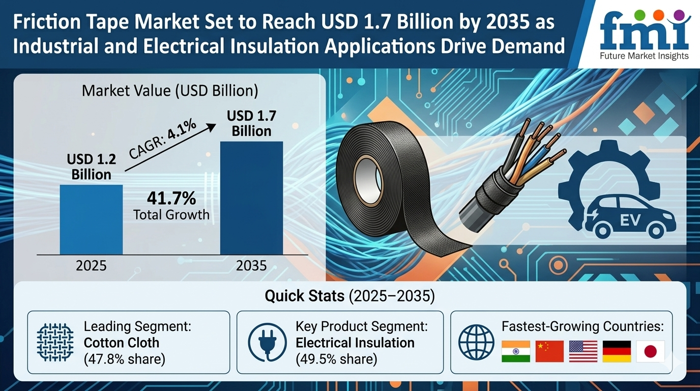 - Friction Tape Market Set to Reach USD 1.7 Billion by 2035 as Industrial and Electrical Insulation Applications Drive Demand